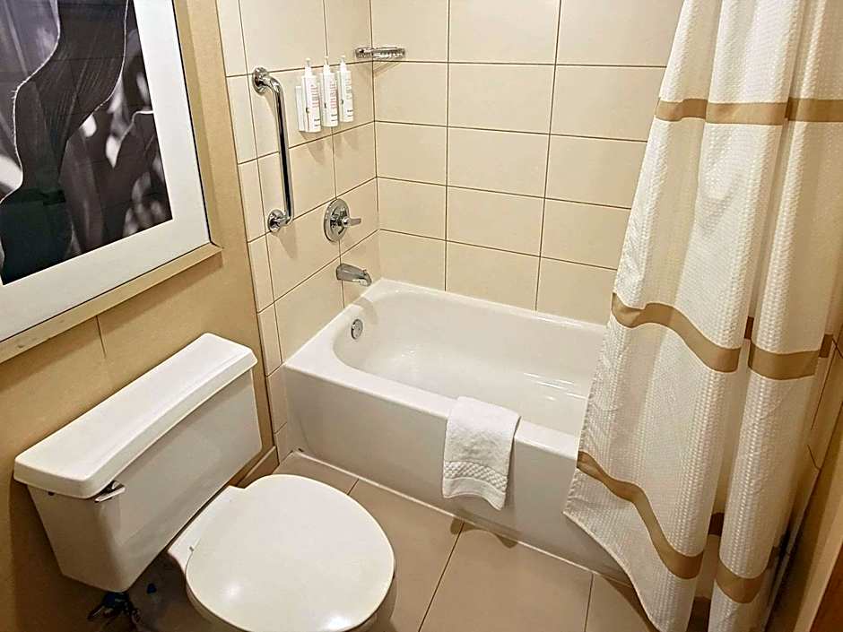 The suite provides air conditioning, a tea and coffee maker, as well as a private bathroom featuring a bath and a shower.